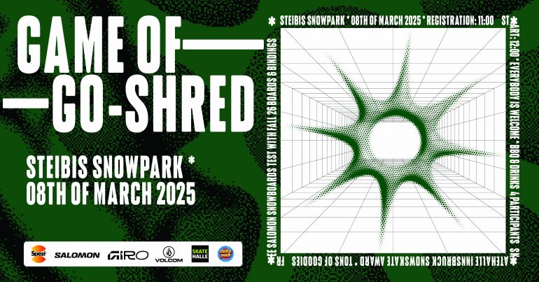 We invite you play the GAME of go-shred with us at Steibis Snowpark. Safe the 8th of March in your agenda beacause we have a sick setup for you, tons of goodies, a filmer and a photographer to catch all the action and to conserve it for eternity.